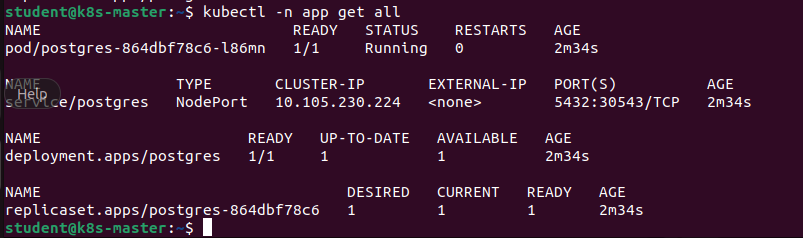 $ kubectl apply -f postgress-app.yamlOnce all objects are created let’s validate if they are up and running.