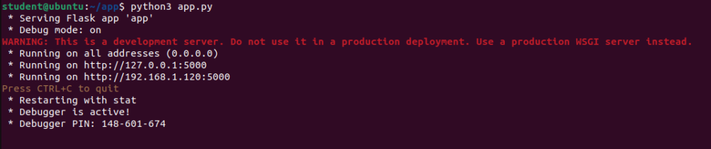 app.run(host='0.0.0.0', port=5000, debug=True)Ok, once we have the Python application ready and database is running and accessible, we can start the whole application with command: