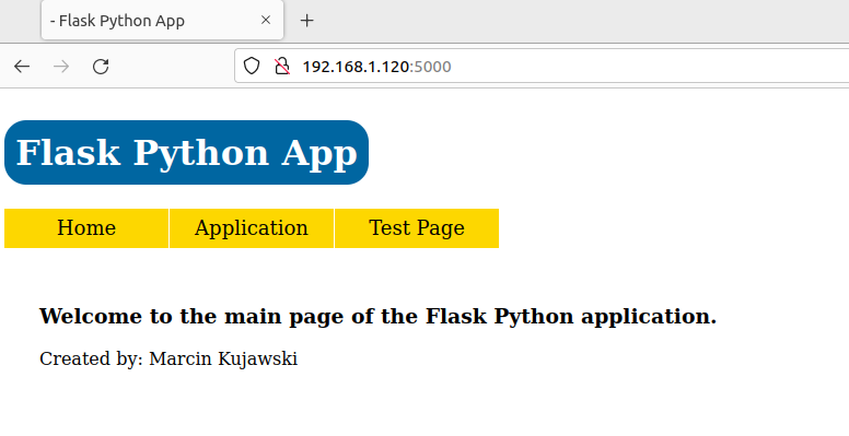 To access my application I need to go to URL: http://192.168.1.120:5000. As expected I see my app GUI presenting home page.