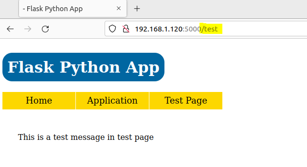 test()to handle/testURL of the application and render thetest.htmlpage fromtemplatesfolder: