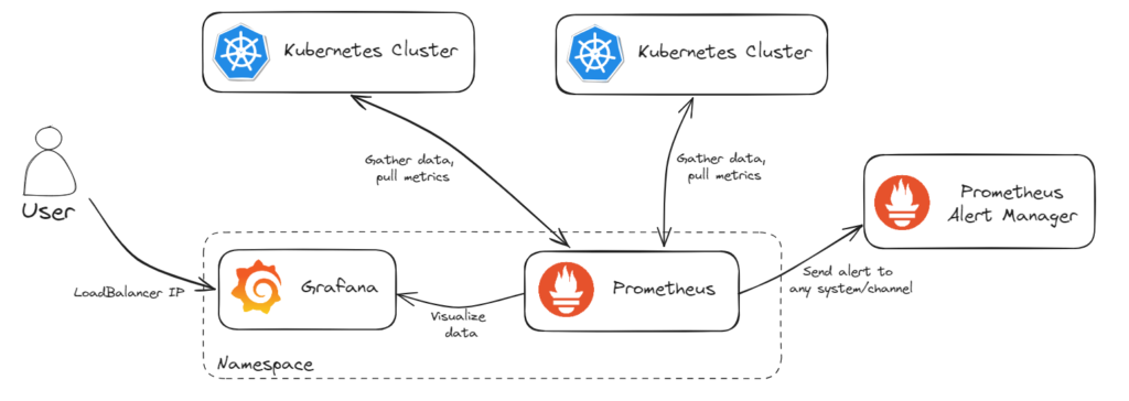Prometheus collects and retains metrics as time-series data, associating each piece of information with a timestamp. It operates on a “pull” model, retrieving metrics from designated targets by accessing their HTTP endpoints for metric scraping. Within a Kubernetes environment, Prometheus plays a crucial role in metrics-driven monitoring and alerting as well.