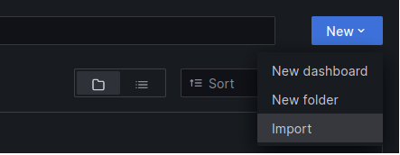 To import the dashboard, on the right hand side under “Dashboards” click “New” button and select “Import”.