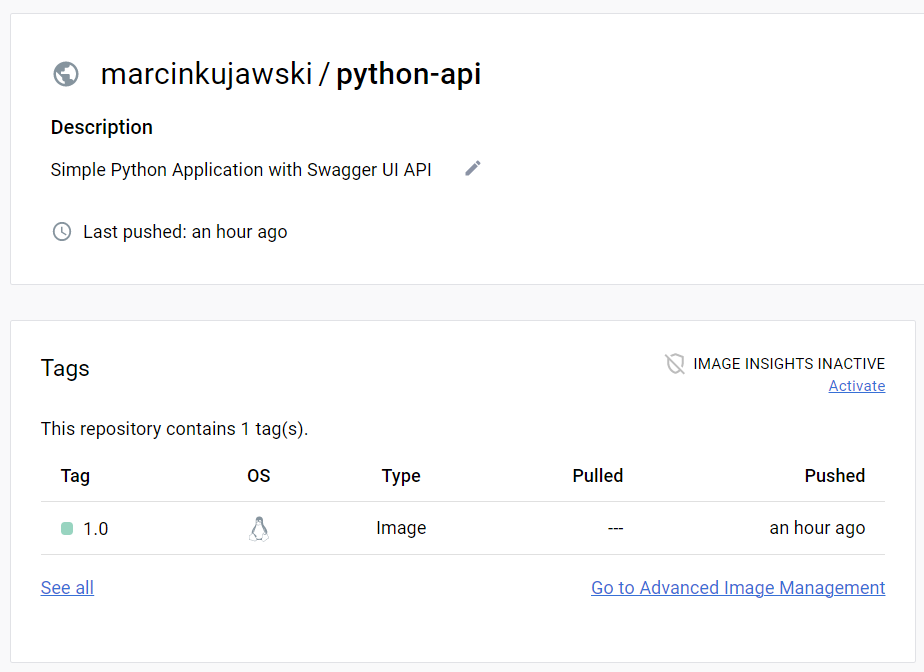 $ docker tag marcinkujawski/python-api:1.0 marcinkujawski/python-api:1.0